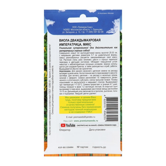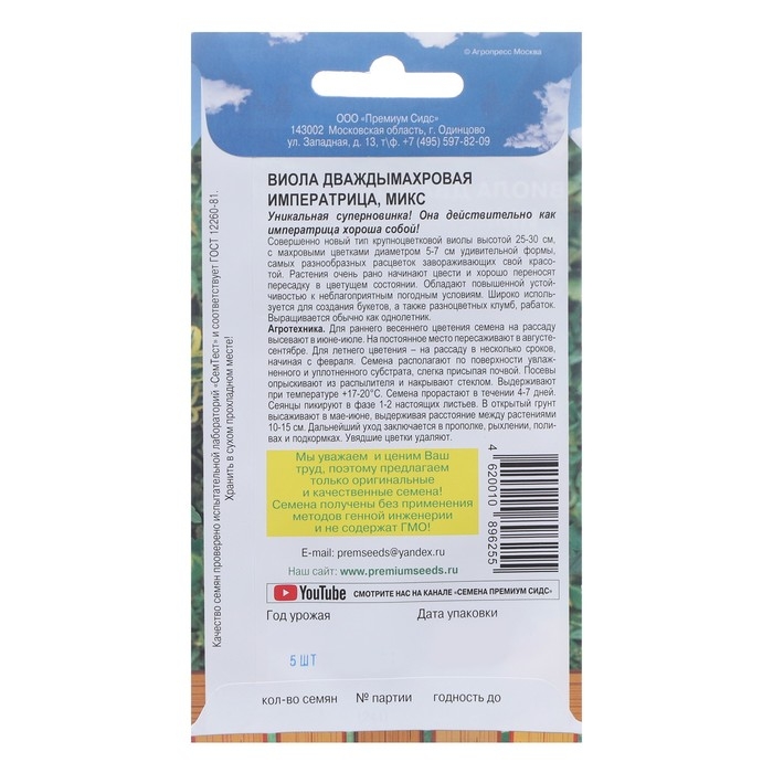 Семена цветов Виола "Махровое кружево", ц/п, 4 шт.
