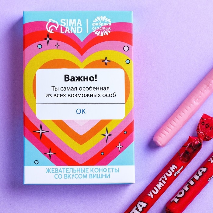 Конфеты жевательные «Ты самая особенная», вкус: вишня, 40,2 г. (6 шт. х 6,7 г.)