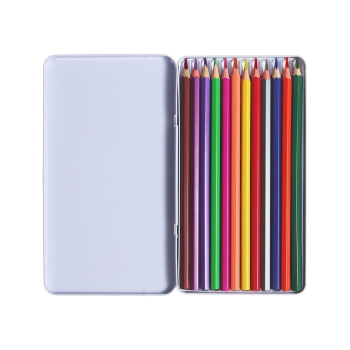 Карандаши акварельные 12 цветов, корпус деревянный, шестигранные, в металлической коробке