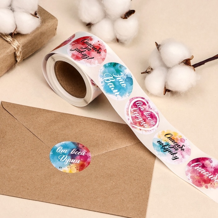 Наклейка имеет хороший клеевой слой, что предотвращает случайное отклеивание от крафта. Наклейка будет не только украшением, но и маленьким приятным сюрпризом на упаковке для ваших покупателей.