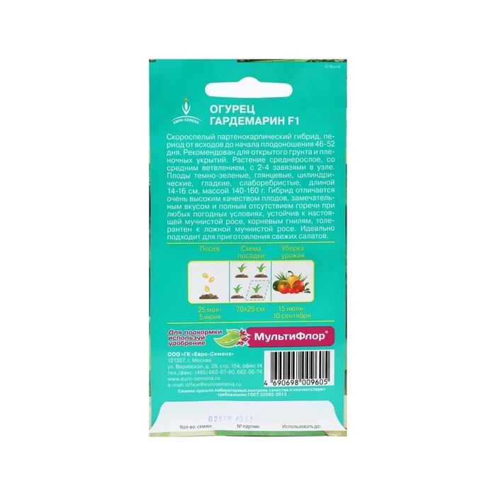 Семена Огурец Гардемарин F1 цв/п 0,25 гр., скороспелый, партенокарпический, гладкий, салатны