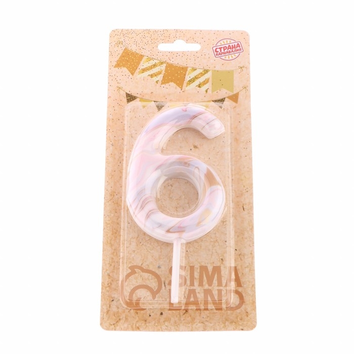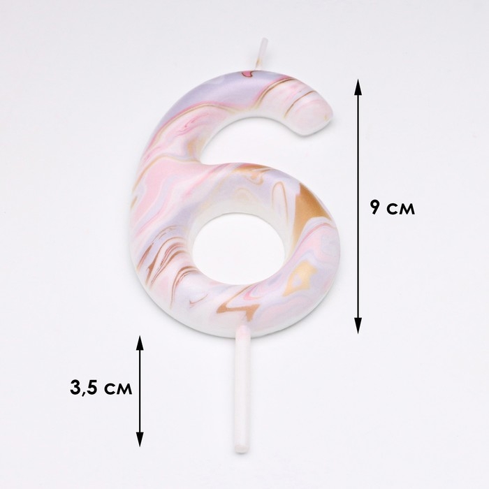 Свеча в торт "Белый мрамор", цифра "6", ГИГАНТ, 9 см