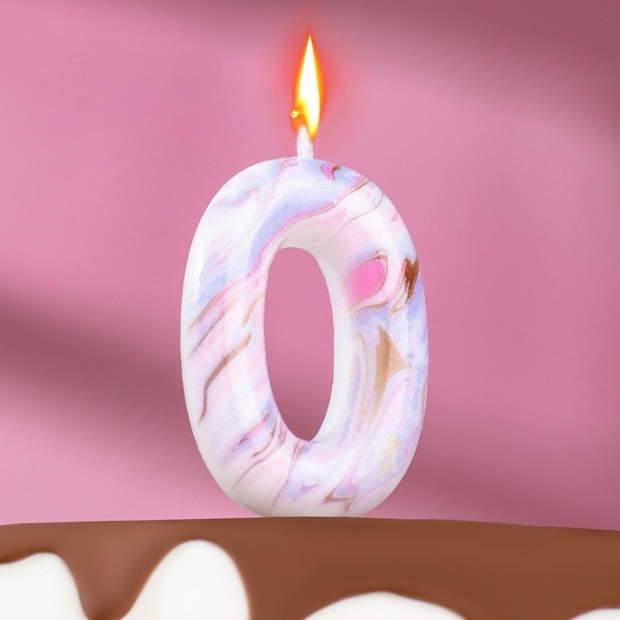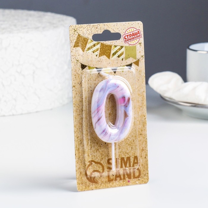 Свеча в торт "Белый мрамор", цифра "0", 5,5 см
