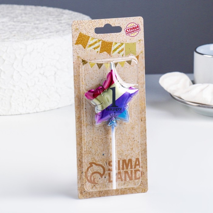 Свеча в торт "Воздушный шарик. Звезда", цифра "1", 5,5 см, разноцветная