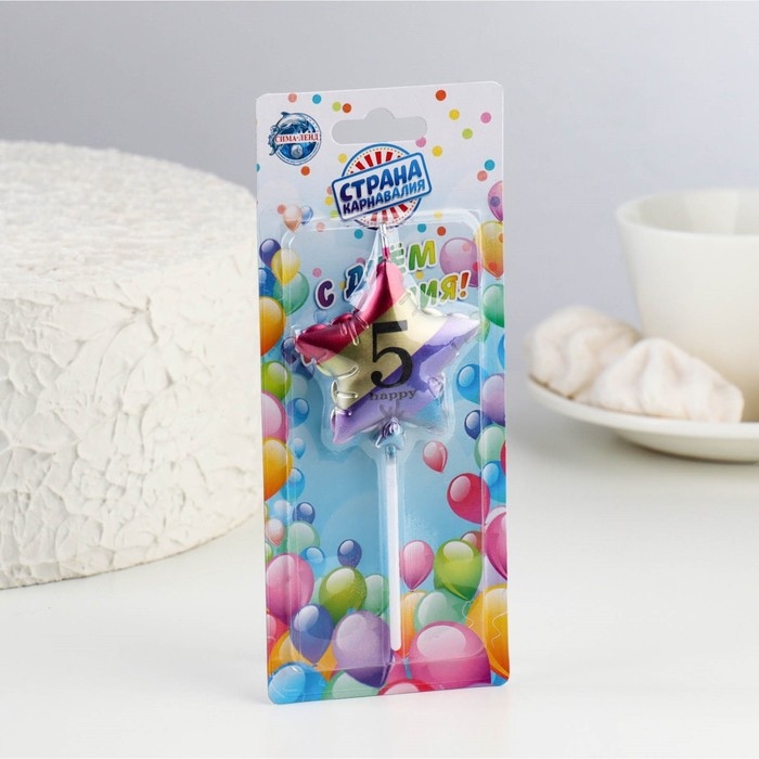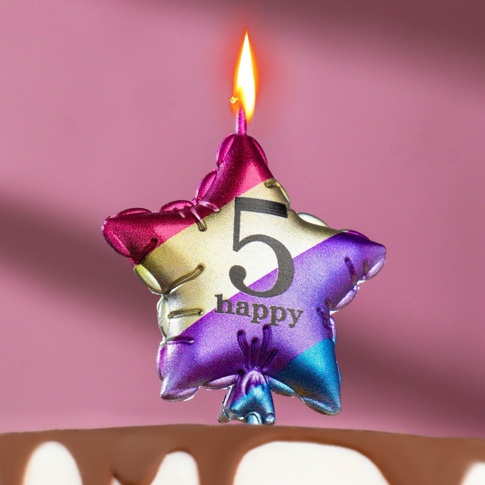 Свеча в торт "Воздушный шарик. Звезда", цифра "5", 5,5 см, разноцветная