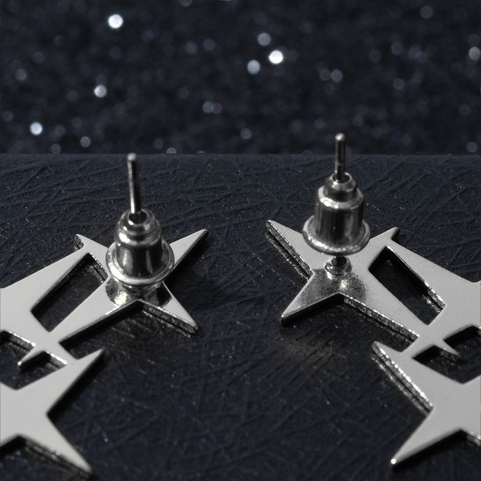 Серьги из металла «Три звёзды», цвет серебро
