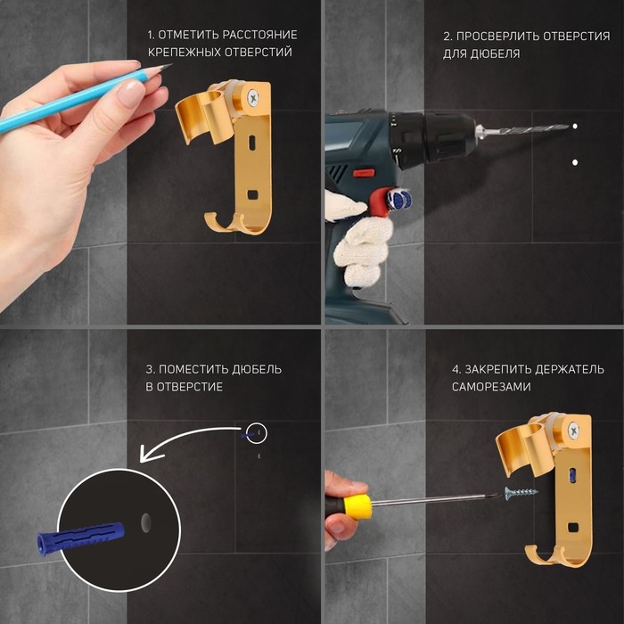 Держатель для душевой лейки ZEIN Z107, нерегулируемый, самоклеющийся, черный