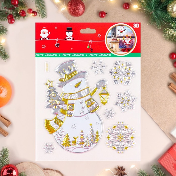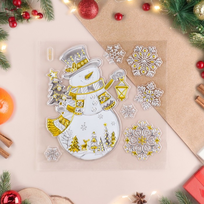 Наклейки на окна "Новогодние" снеговик с фонарем, 24 х 19 см