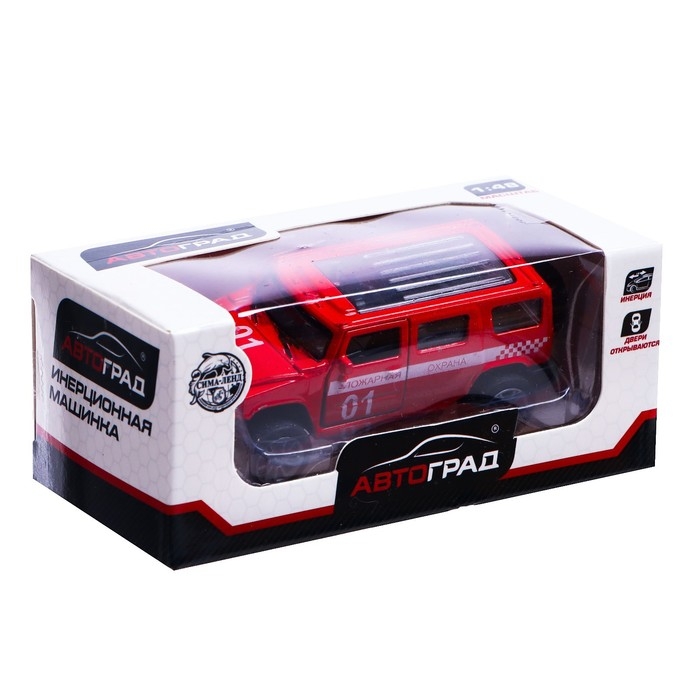 Машина металлическая «Пожарная служба», 1:48, инерция, открываются двери, цвет красный