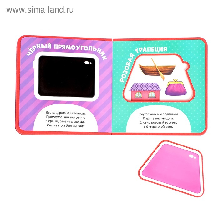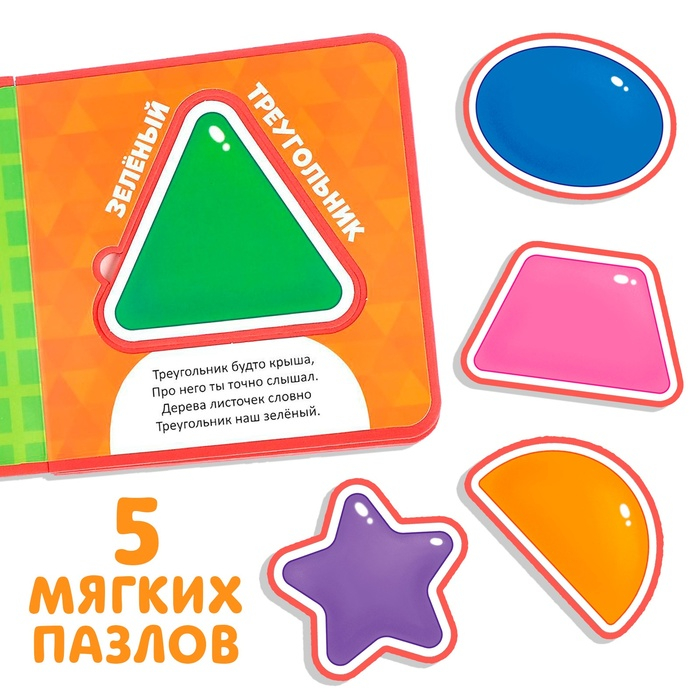 С мягкой книгой малыш получит свои первые знания о геометрических фигурах. А также сможет поиграть с вынимающимися пазлами.