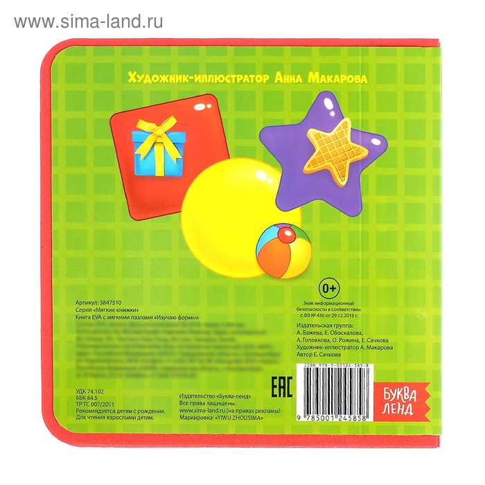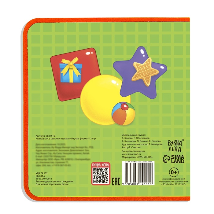 Книжка с мягкими пазлами EVA «Изучаю формы», 12 стр.