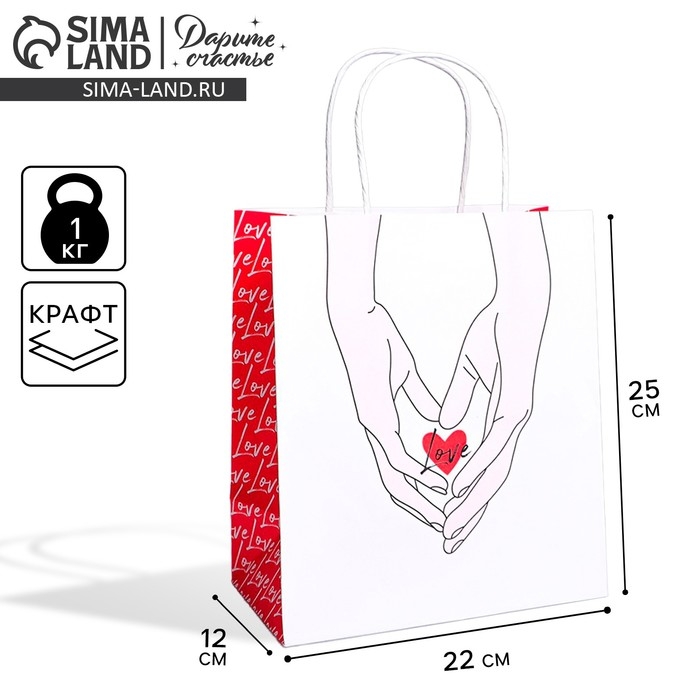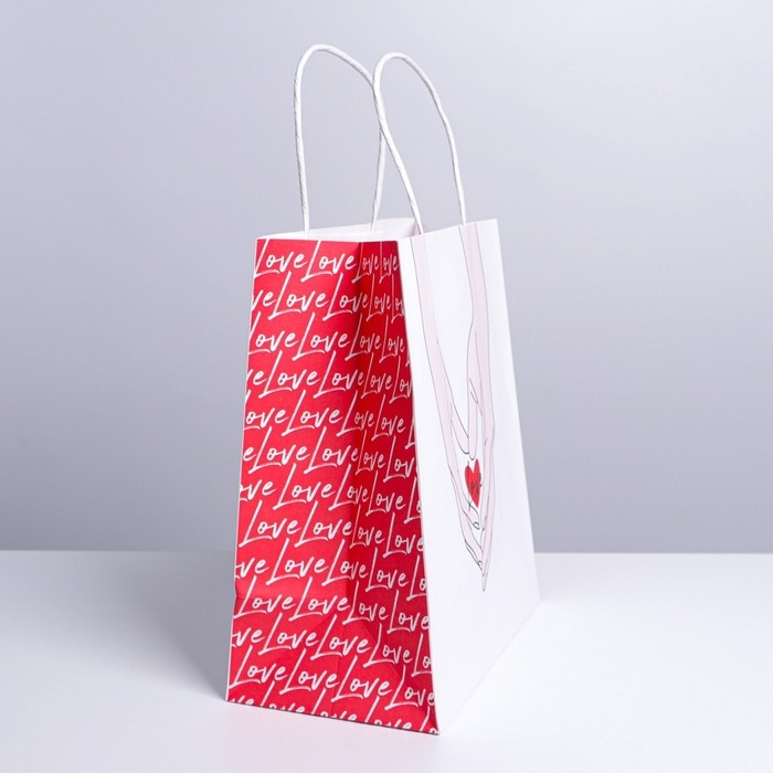 Пакет подарочный крафтовый, упаковка, «Сердце», 22 х 25 х 12 см