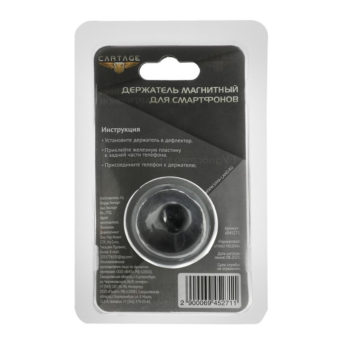 Держатель телефона CARTAGE в дефлектор, магнитный