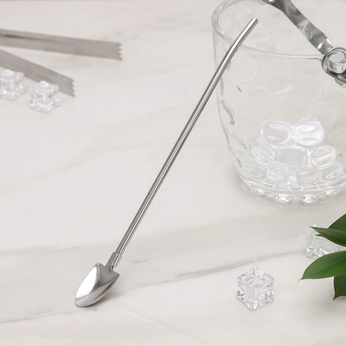 Ложка-трубочка для коктейля из нержавеющей стали «Лопата», длина 21,5 см, цвет серебряный