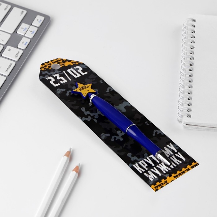 Ручка шариковая синяя паста «23/02», пластик, со звездой на подложке-погон