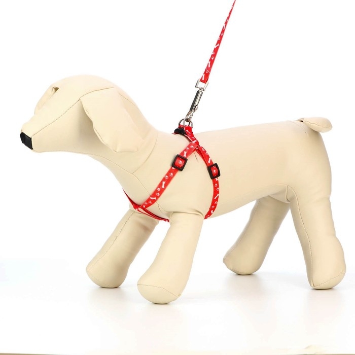 Комплект амуниции с мягкой шлейкой, L, поводок 120 х 1,5 см, ОШ 30-50 см, ОГ 36-56 см, красный 473