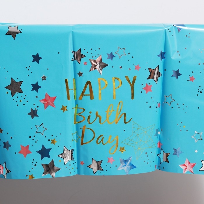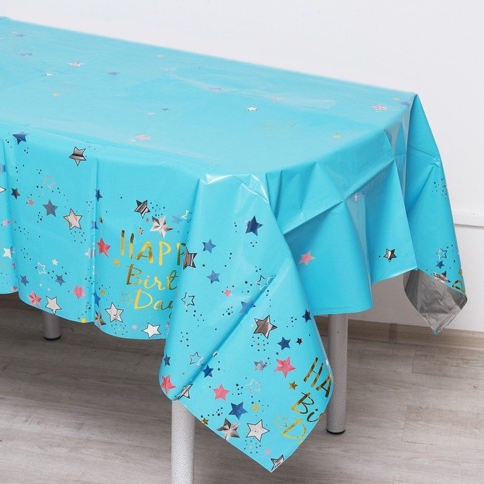 Скатерть «С днём рождения», 137 × 183 см, цвет голубой