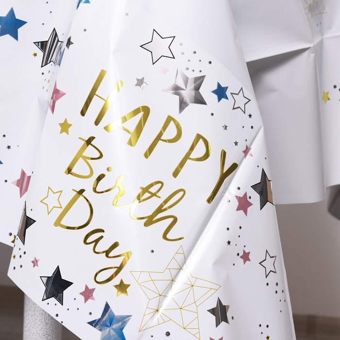 Скатерть «С днём рождения», 137 × 183 см, цвет белый