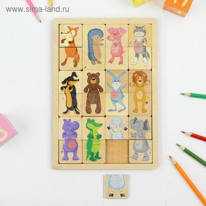 Развивающая игра из дерева «Зоопарк. Весёлые половинки» познакомит ребёнка с разными животными. Сложите 12 фигурок животных или придумайте своё сказочное существо, соединив верх одного и низ другого животного. Получится весело! Игра подходит для занятий дома и в детском саду.