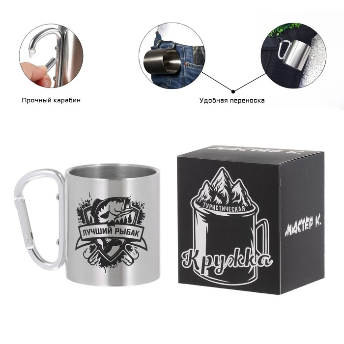 Термокружка, 180 мл, Карабин "Лучший рыбак", 7.5 х 10.5 см