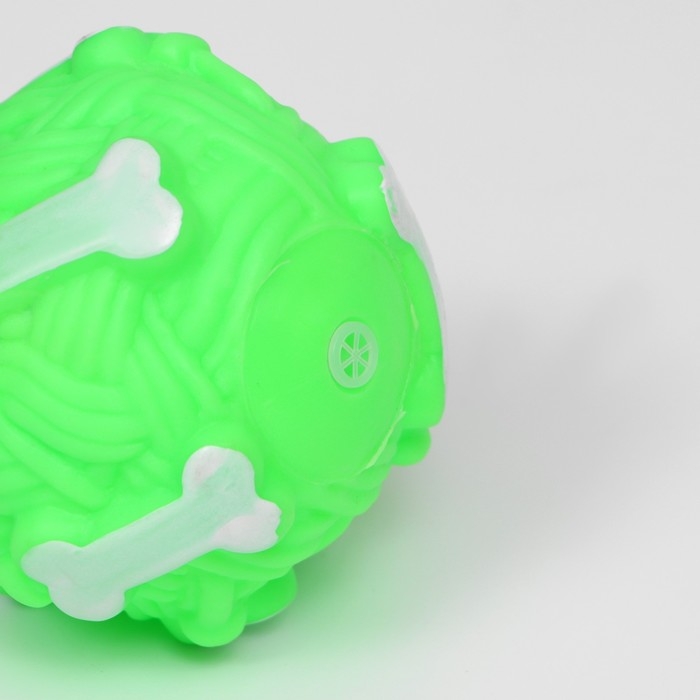 Игрушка пищащая "Клубок с косточками" для собак, 8 см, зелёная