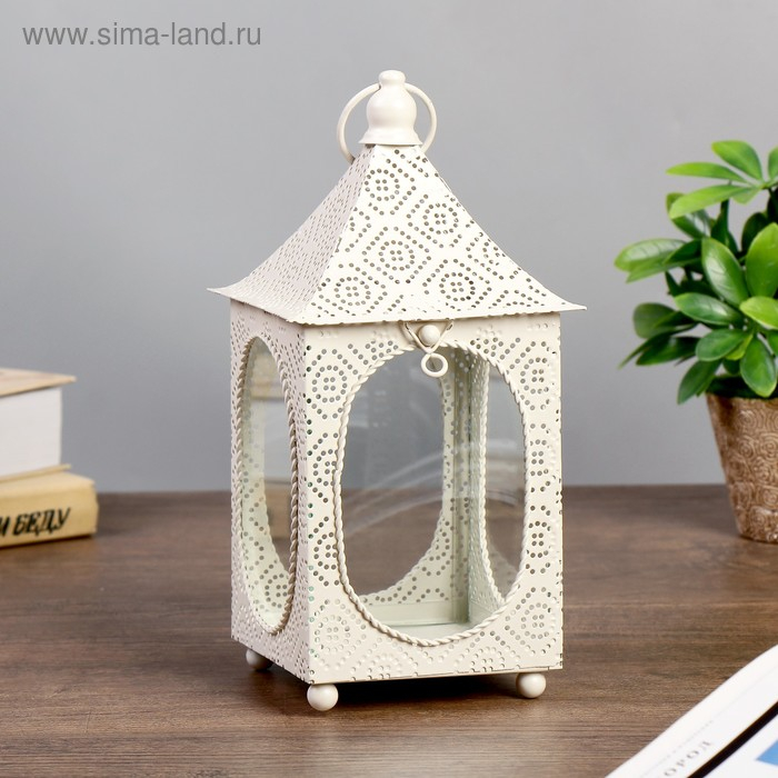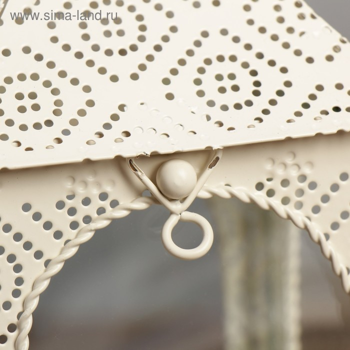 Подсвечник металл, стекло на 1 свечу "Фонарик с овальными окнами" белый 23,5х10,2х11,7 см