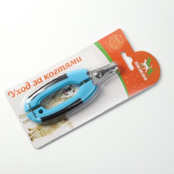 Ножницы-когтерезы "Пижон" Premium с эргономичной ручкой, чёрно-голубые