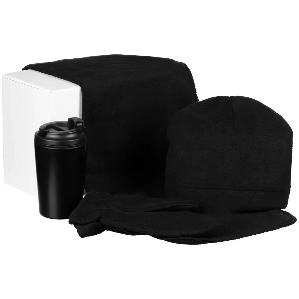 Набор Fleecy с термостаканом, черный