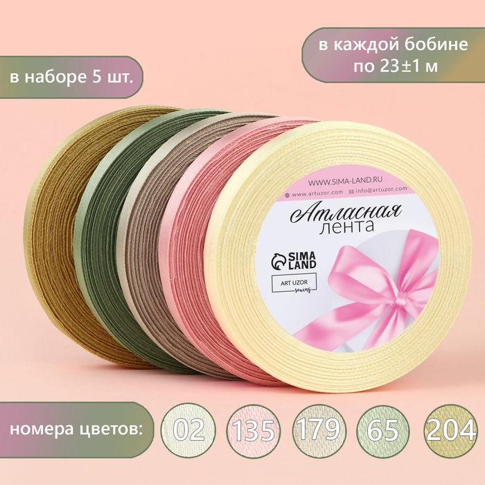 Набор атласных лент «Тёплый день», 5 шт, размер 1 ленты: 10 мм × 23 ± 1 м