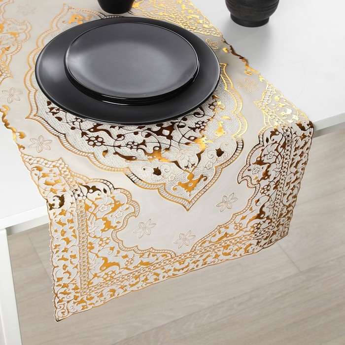 Салфетка сервировочная на стол «Восток», ажурная, 84×40 см, ПВХ, цвет золотой