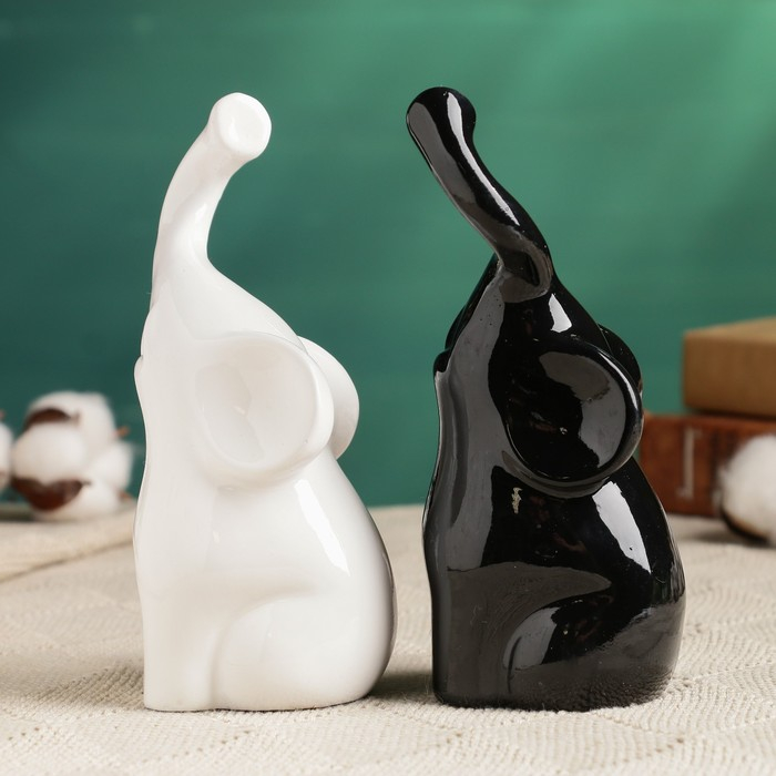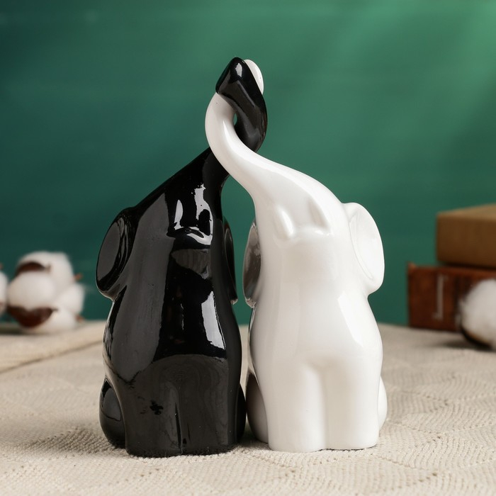 Фигура "Пара слонов" черный/белый, 7х12х16см