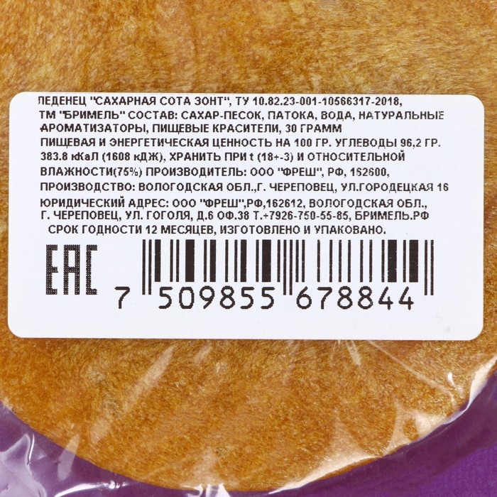 Сахарные соты - это двойное удовольствие: вкусная сладость и интересная игра. Попробуйте достать фигурку из круга, при этом не сломав ее. В случае неудачи - не расстраивайтесь, ведь у вас все равно остался прекрасный десерт!