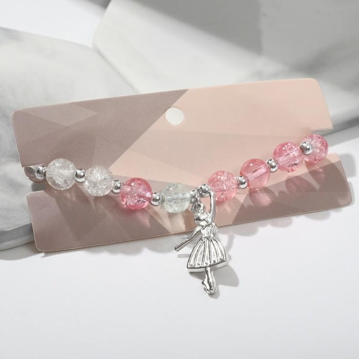 Браслет «Радость» балерина, цвет бело-розовый в серебре, d=7