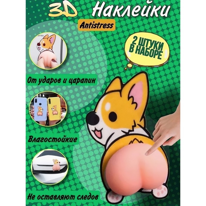 Мялка антистресс «Попка» в наборе 2 мялки и наклейки, МИКС