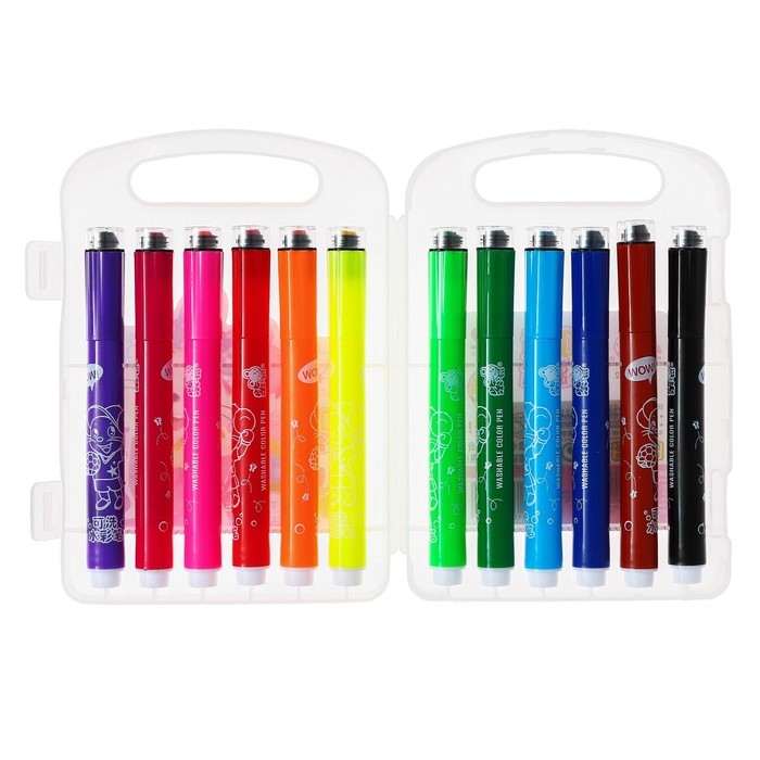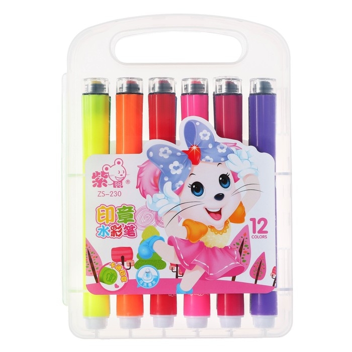 Фломастеры 12 цветов "Мышка", в пластиковом пенале с ручкой, вентрилируемый колпачок, МИКС