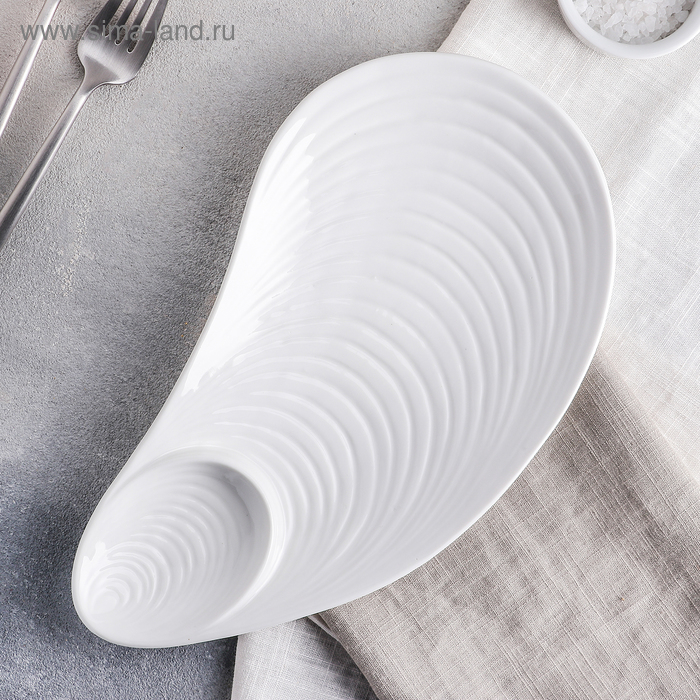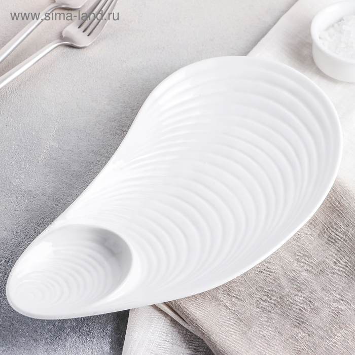 Блюдо керамическое с соусником «Ракушка», 28×15×2 см, цвет белый