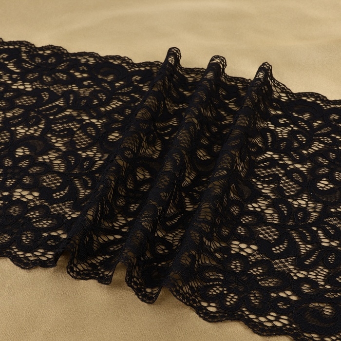 Кружевная эластичная ткань, 220 мм × 2,7 ± 0,5 м, цвет чёрный