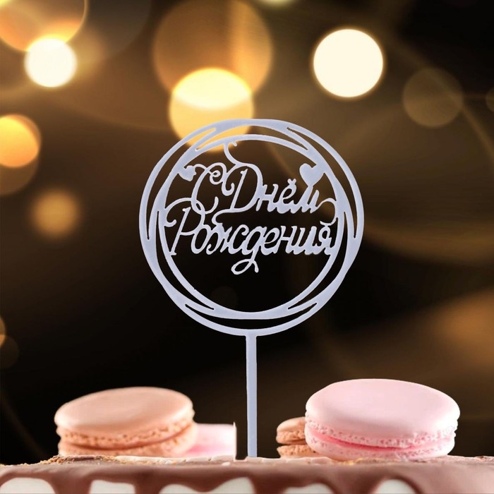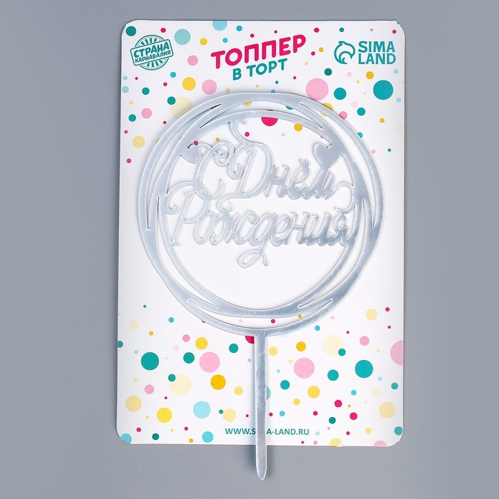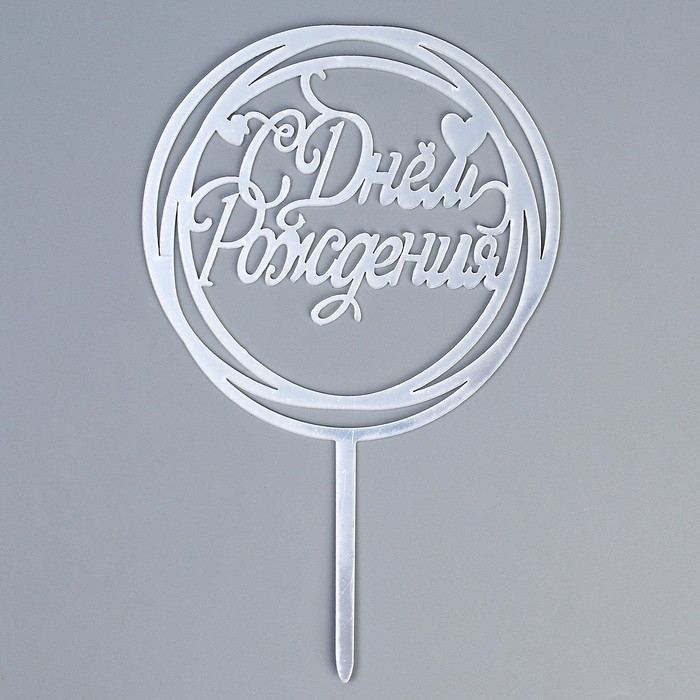 Топпер «С Днём Рождения», круг, цвет серебро