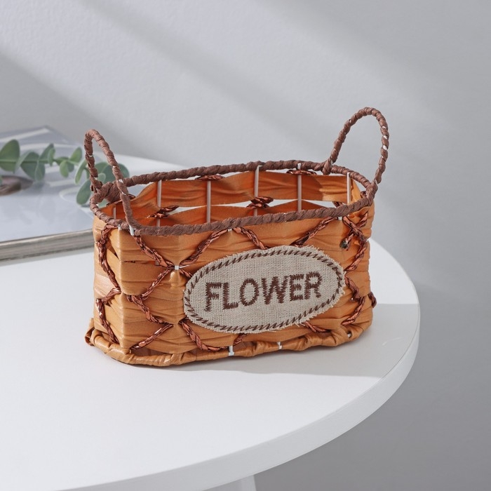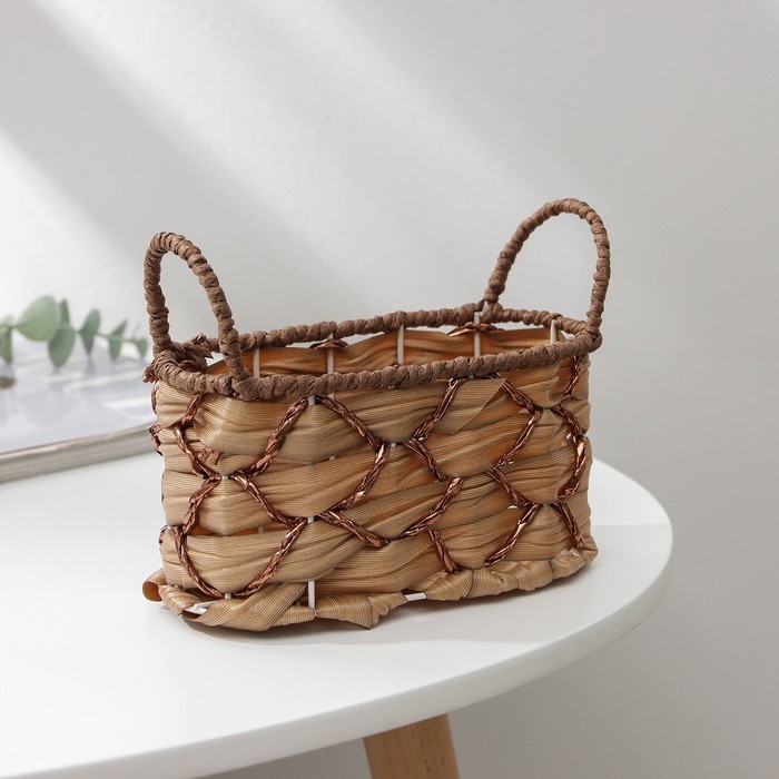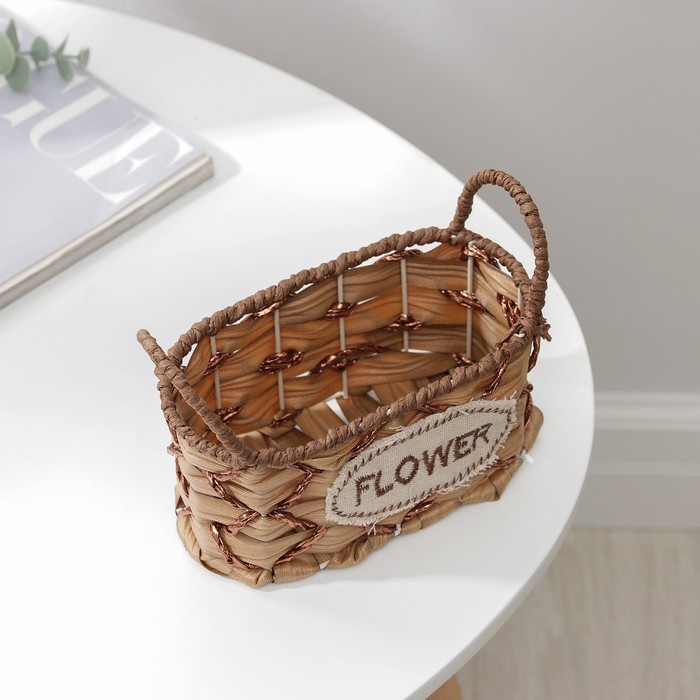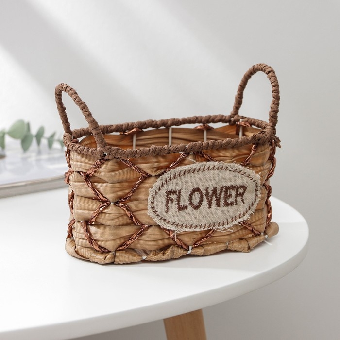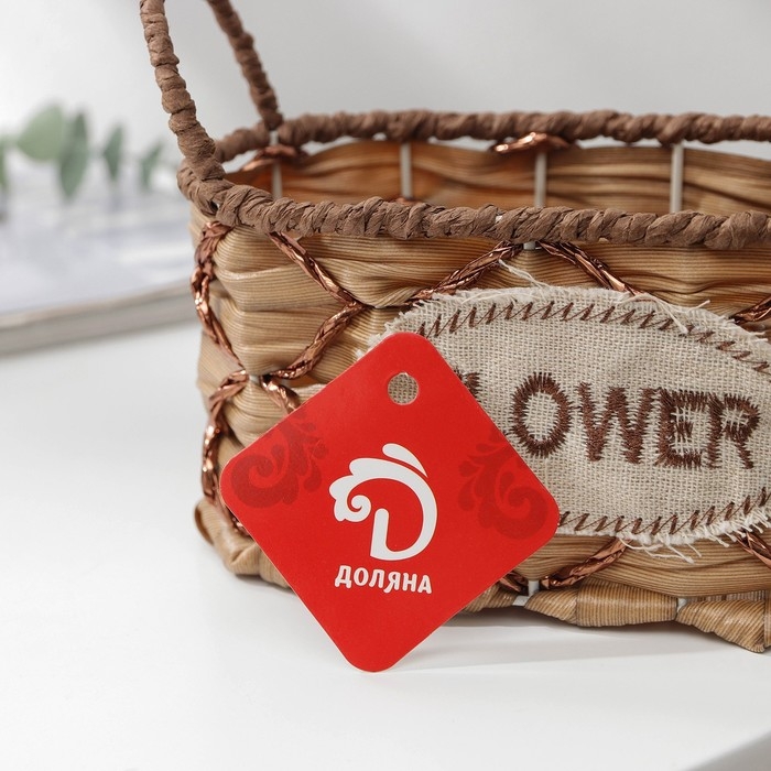 Кашпо для цветов плетёное с ручками Доляна «Овал», 17,5×8×12,5 см, цвет светло-коричневый