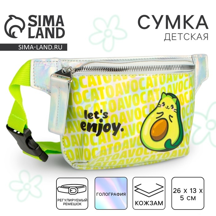 Сумка детская для девочки поясная "Авокато", на молнии, цвет зелёный
