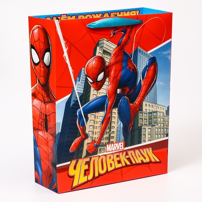 Пакет подарочный "С Днем рождения" 31х40х11.5 см, упаковка, Человек-паук