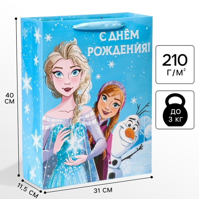 Пакет подарочный "С Днем рождения" 31х40х11 см, упаковка, Холодное сердце