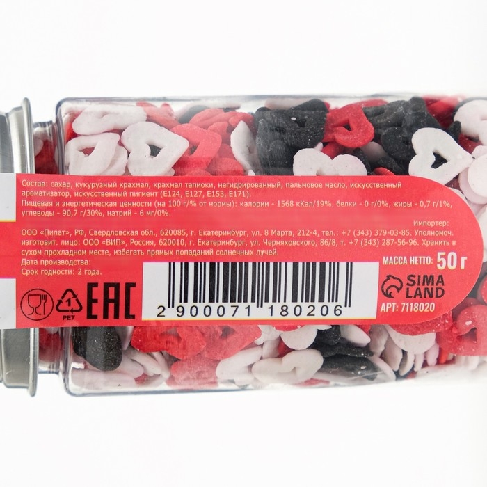 Кондитерская посыпка «Миром правит любовь», красная, белая, чёрная, 50 г