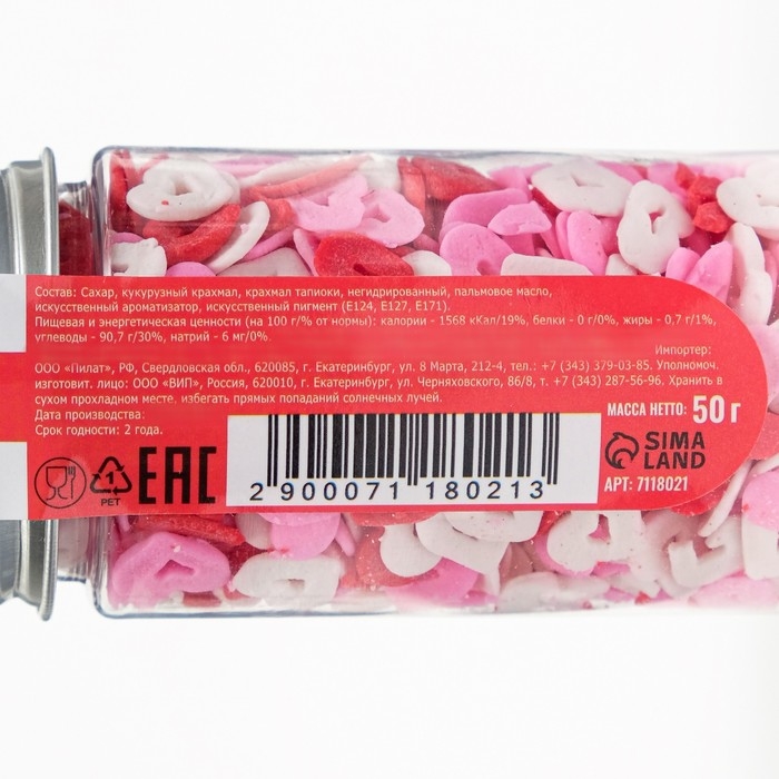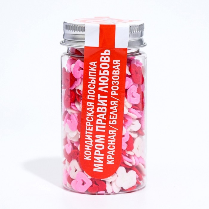 Кондитерская посыпка «Миром правит любовь», красная, белая, розовая, 50 г
