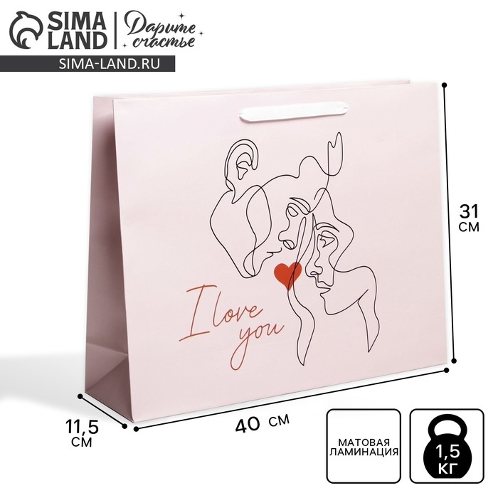 Пакет подарочный ламинированный, упаковка, «От всего сердца», L 40 х 31 х 11,5 см