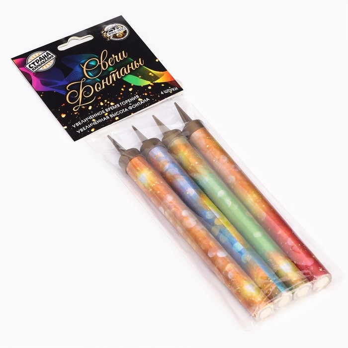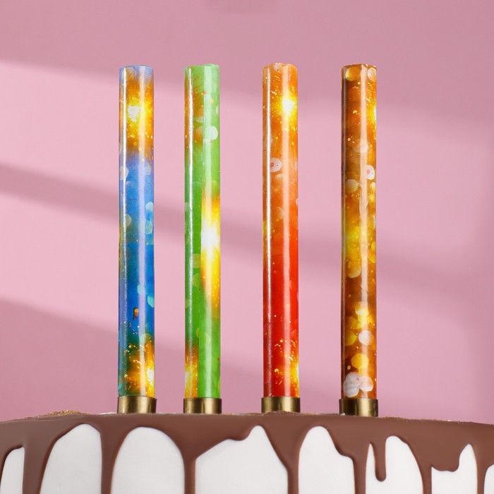 Свечи фонтаны для торта "Цветные искры", 10 см, 30 секунд, цветное пламя, 4 шт