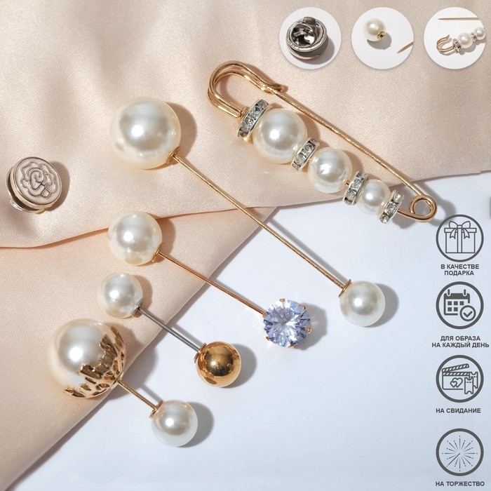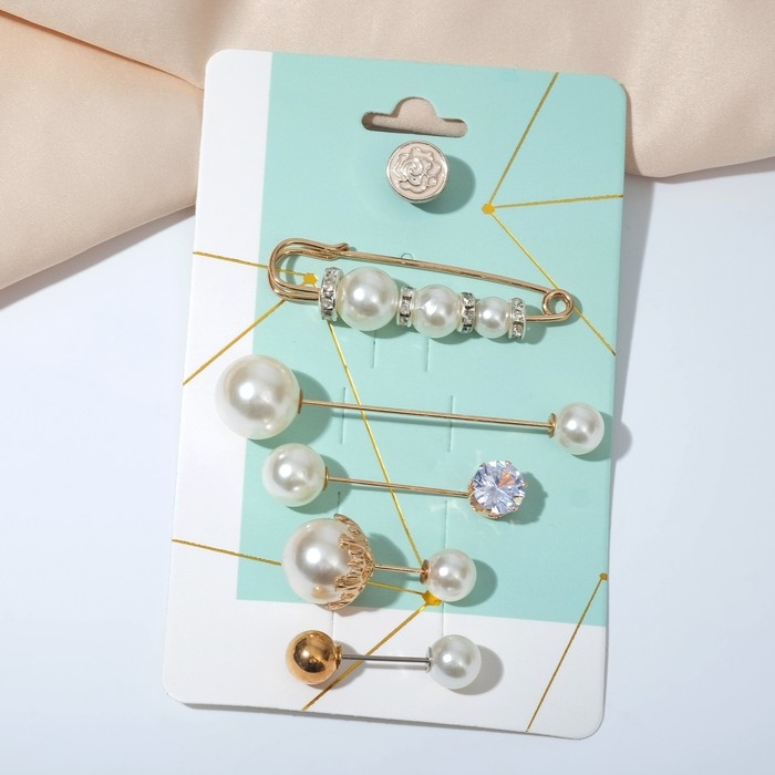 Данная булавка – настоящая находка для модниц, предпочитающих нетривиальные аксессуары. Брошь-булавка станет не только оригинальным дополнением вашего наряда, но и позволит без труда приколоть при необходимости палантин или шейный платок. Используйте её в качестве украшения шляпки, рубашки или галстука. Набор булавок (6 шт.) «Жемчужное ассорти», 6,5 см, цвет белый в золоте внесёт особую нотку изящности в ваш образ.