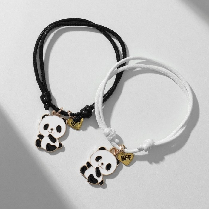 Браслеты «Неразлучники» панды и лапки, цвет чёрно-белый, d=6 см