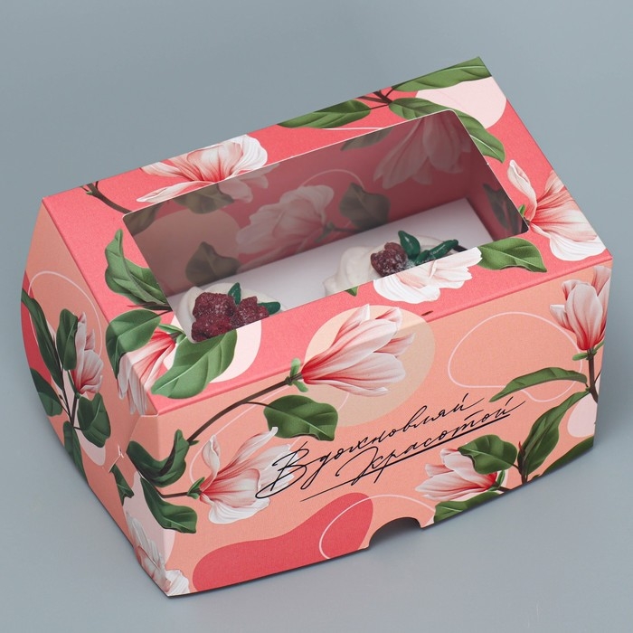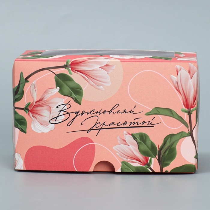 Коробка для капкейков, кондитерская упаковка двухсторонняя, 2 ячейки, «Вдохновляй красотой», 16 х 10 х 10 см