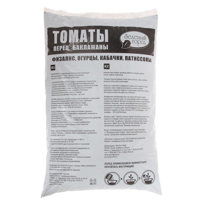 Почвогрунт на основе Биогумуса Томаты, перец, баклажаны, Зеленый город, 20 л